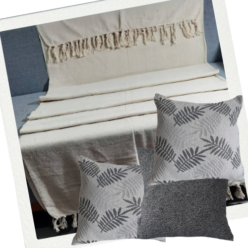 Este kit oferece uma combinação harmoniosa de manta e almofadas em tons de ciza e branco, ideal para dar um toque aconchegante e elegante ao seu ambiente.