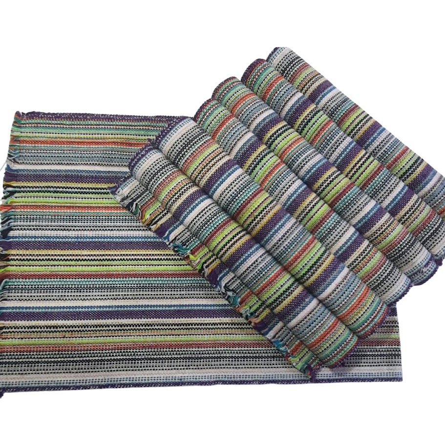 Jogo Americano Estilo Rústico Ritmo Urbano Listras coloridas finas – 7 Lugares - Color 03 cores verde, preto, azul, amarelo e branco