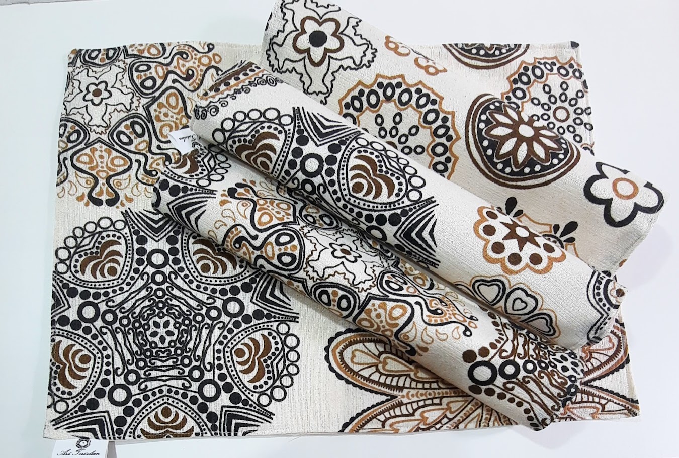 Superfície confeccionados em tecido Jacquard Estampa Paisley nas cores Marrom, bege e preto