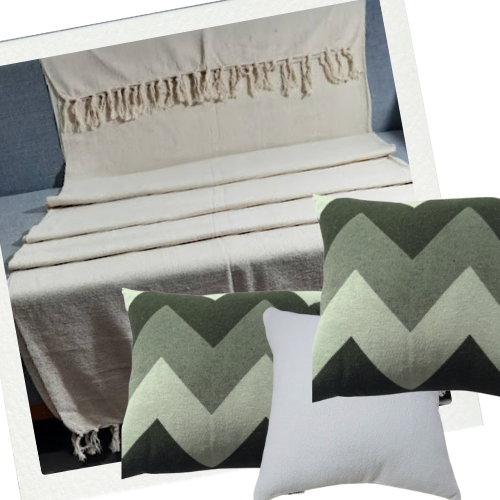 Este kit oferece uma combinação harmoniosa de manta e almofadas em tons de verde e cru, ideal para dar um toque aconchegante e elegante ao seu ambiente.