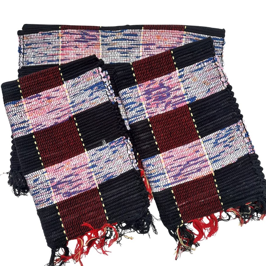 Kit 3 Peças de Tapetes Artesanais em Fio de Malha Xadrez Colorida. O conjunto inclui 1 tapete de 50x150cm e 2 tapetes de 50x75cm, produzidos manualmente em tear artesanal, garantindo qualidade e exclusividade. Com acabamento em nós nas pontas e estampa xadrez colorida, são perfeitos para compor ambientes acolhedores, modernos e cheios de personalidade. Ideais para quartos, salas ou corredores, adicionam charme e conforto à decoração.