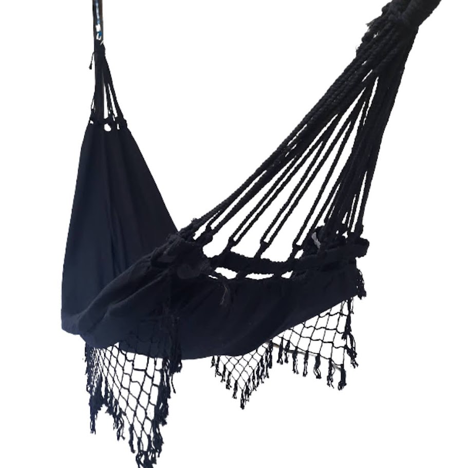 Rede de Descanso Casal Art Tertulian, confeccionada em tamanho 1,50x3,50m, na elegante cor Preta com acabamento em franjas laterais que realçam o toque artesanal. Perfeita para transformar qualquer espaço em um verdadeiro refúgio de paz, une conforto, resistência e estilo. Ideal para momentos de relaxamento no quarto, varanda ou área externa, trazendo acolhimento e charme à decoração.