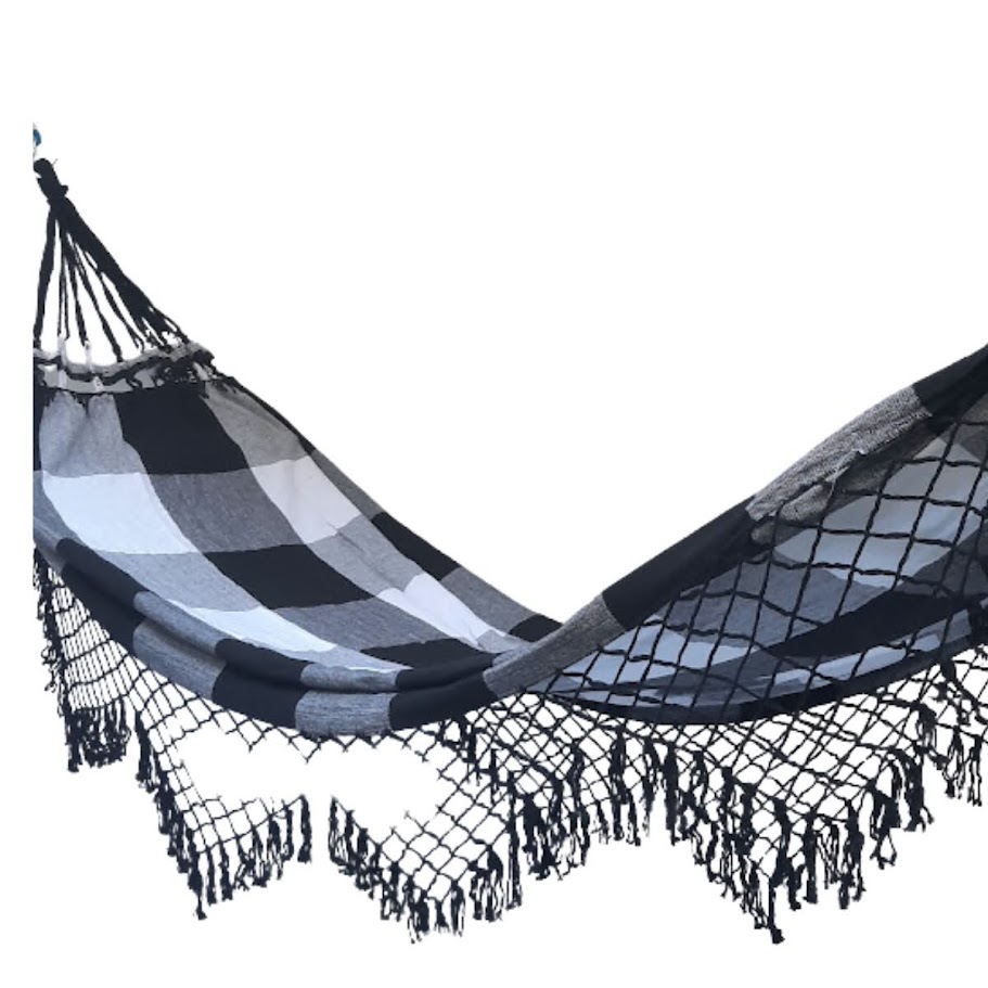 Rede de Descanso Casal Art Tertulian, confeccionada em tamanho 1,50x3,50m, na elegante cor Xadrez Preta / Cru com acabamento em franjas laterais que realçam o toque artesanal. Perfeita para transformar qualquer espaço em um verdadeiro refúgio de paz, une conforto, resistência e estilo. Ideal para momentos de relaxamento no quarto, varanda ou área externa, trazendo acolhimento e charme à decoração.
