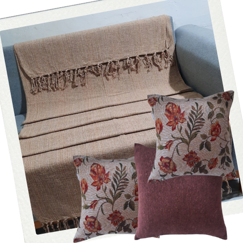 Este kit oferece uma combinação harmoniosa de manta e almofadas em flora colorido ideal para dar um toque aconchegante e elegante ao seu ambiente.